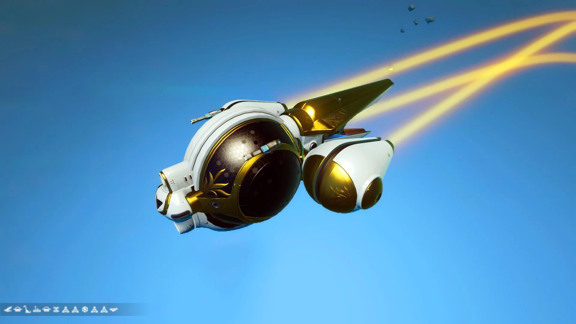 Guppy with Long Tail and Boosters. | Fittingly, the Exotic features the Qitanian Empire's color scheme of White and Gold |