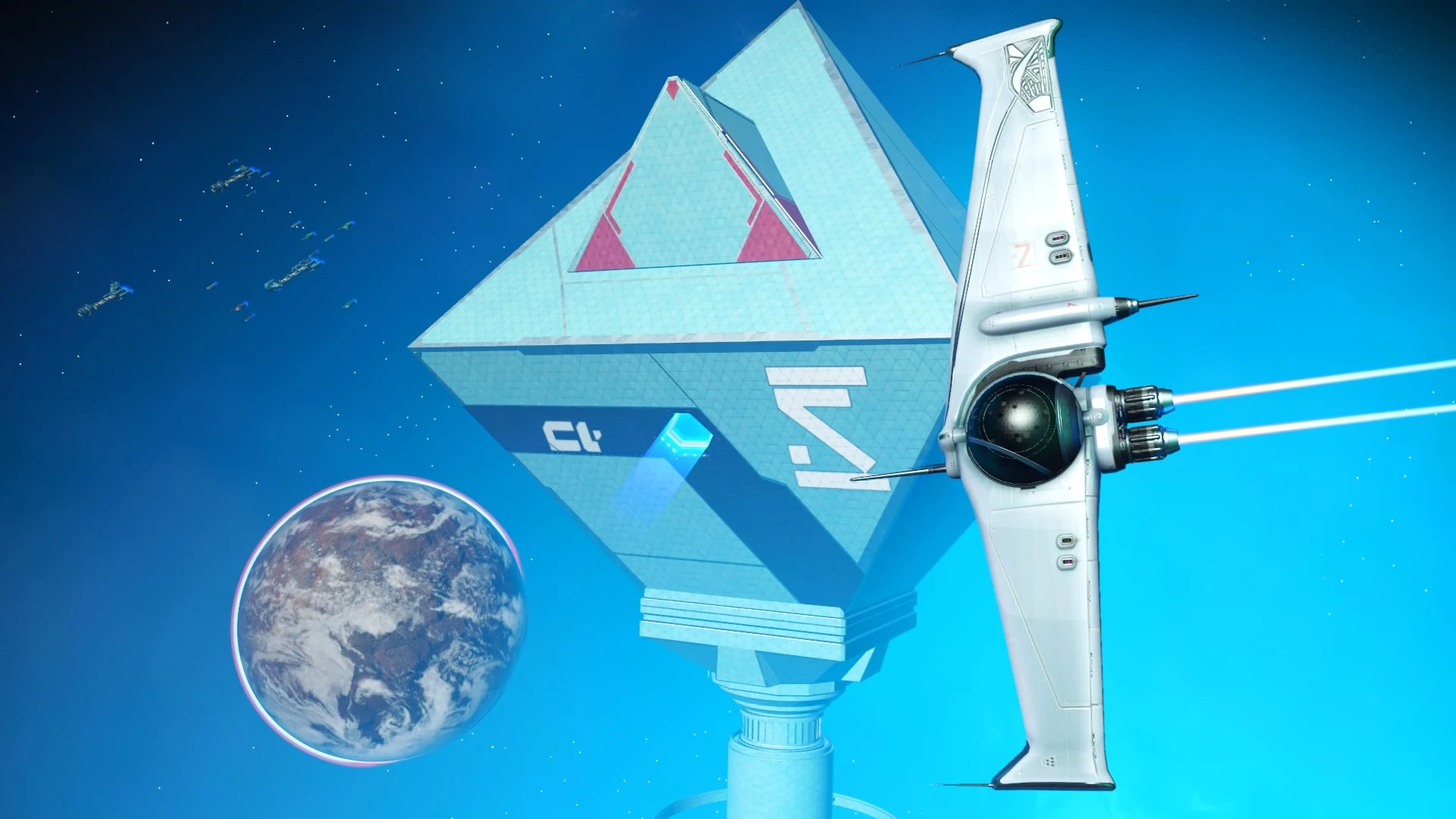 One Space station located in orbit above the planet Okhalla.