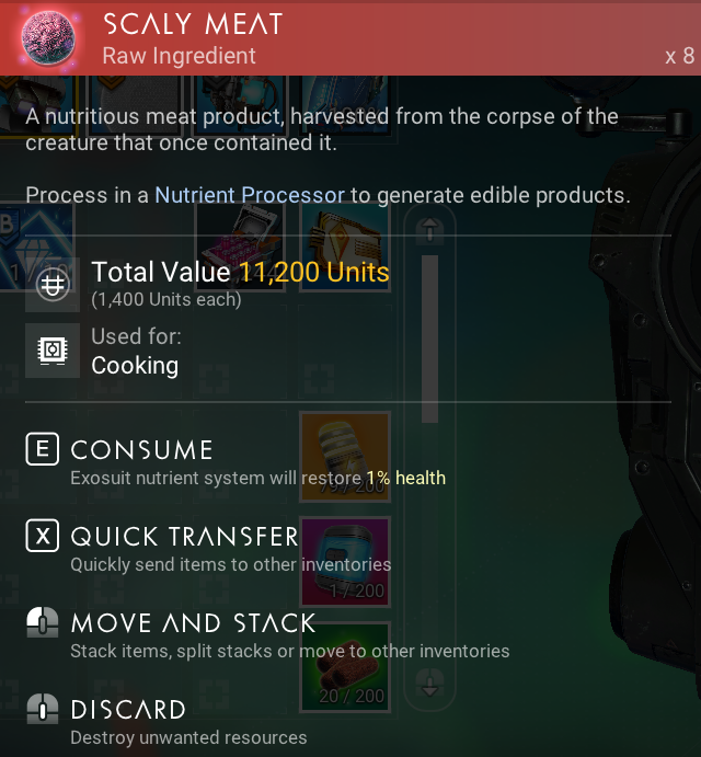 Scaly Meat is used as an ingredient for cooking the following products using a Nutrient Processor: