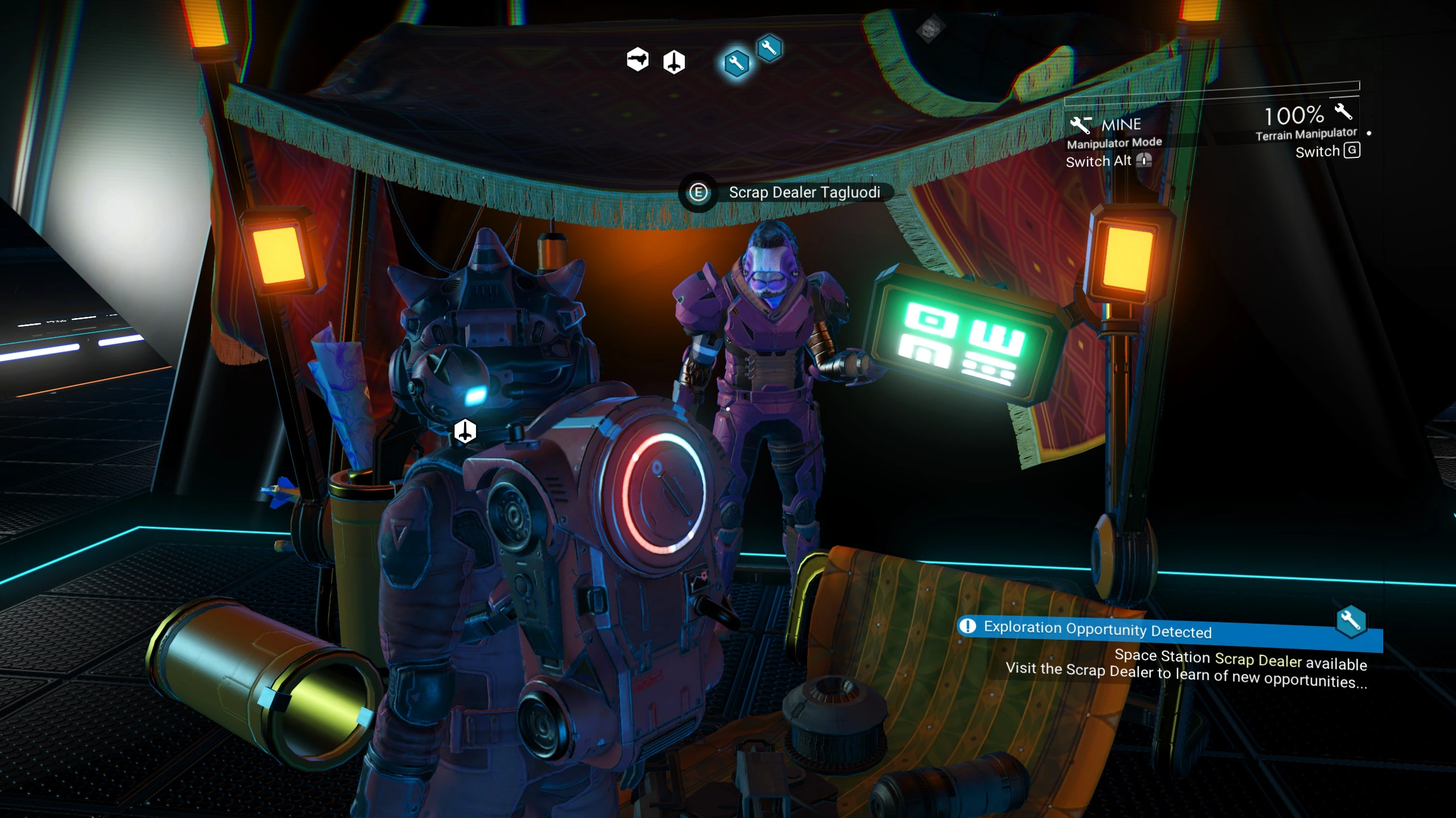 The Scrap Dealer is an NPC that can be found in a stall located inside a pirate space station.