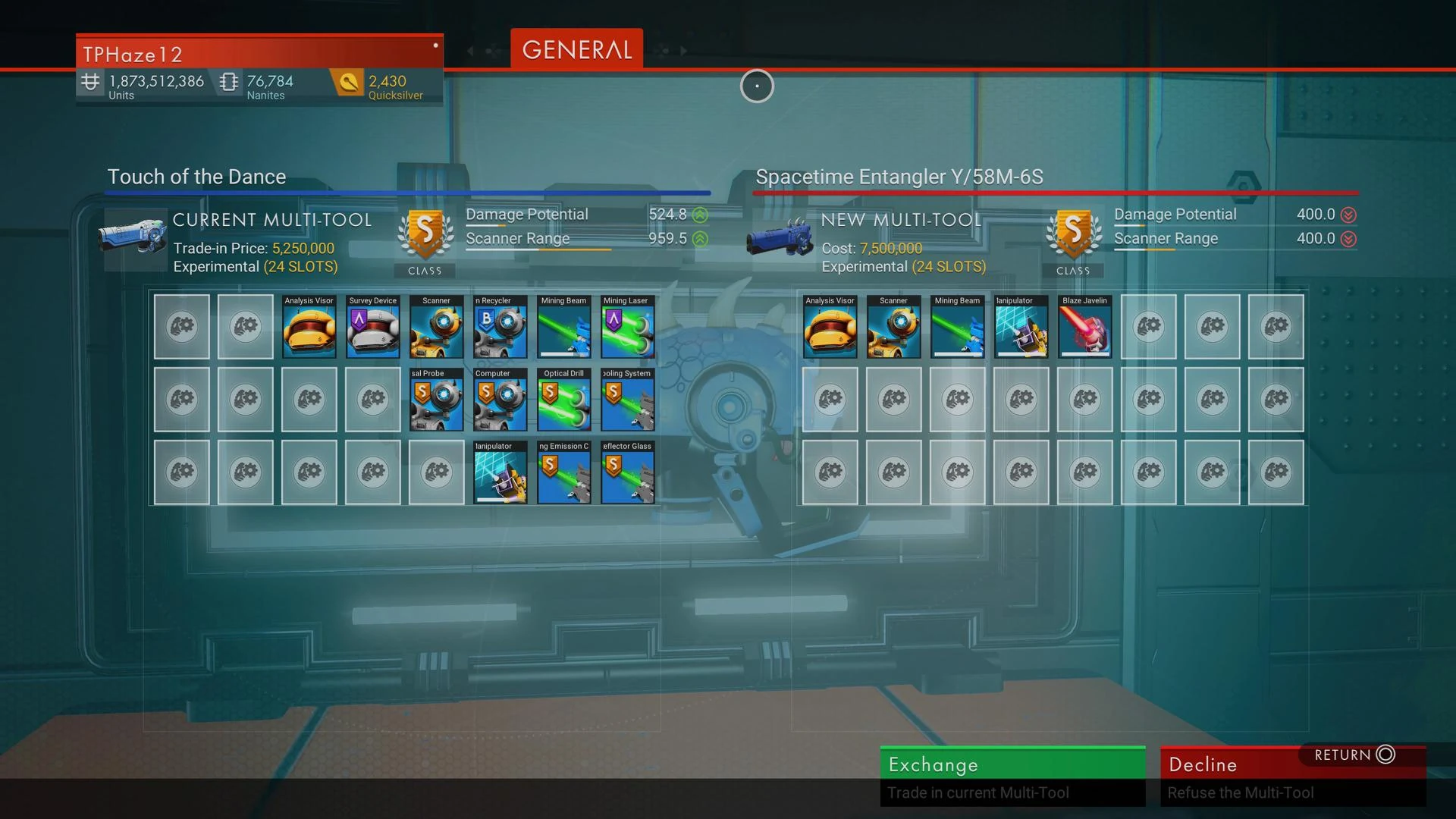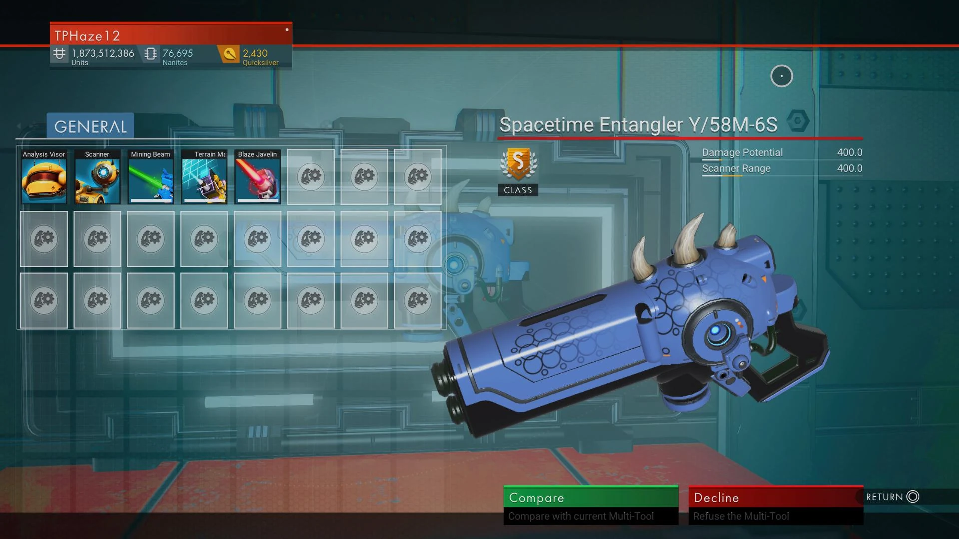Spacetime Entangler Y/58M-6S is a Experimental multi-tool in the No Man's Sky universe.