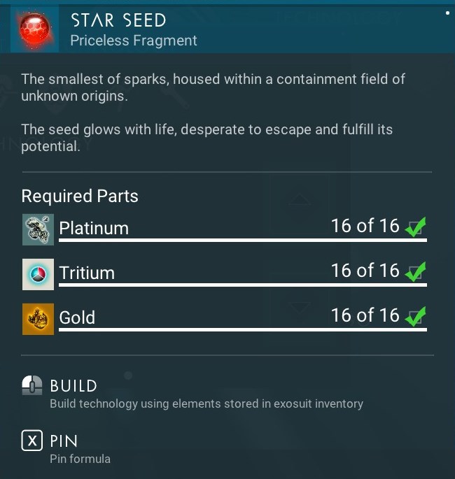 Star Seed can be built using a blueprint and the following ingredients: