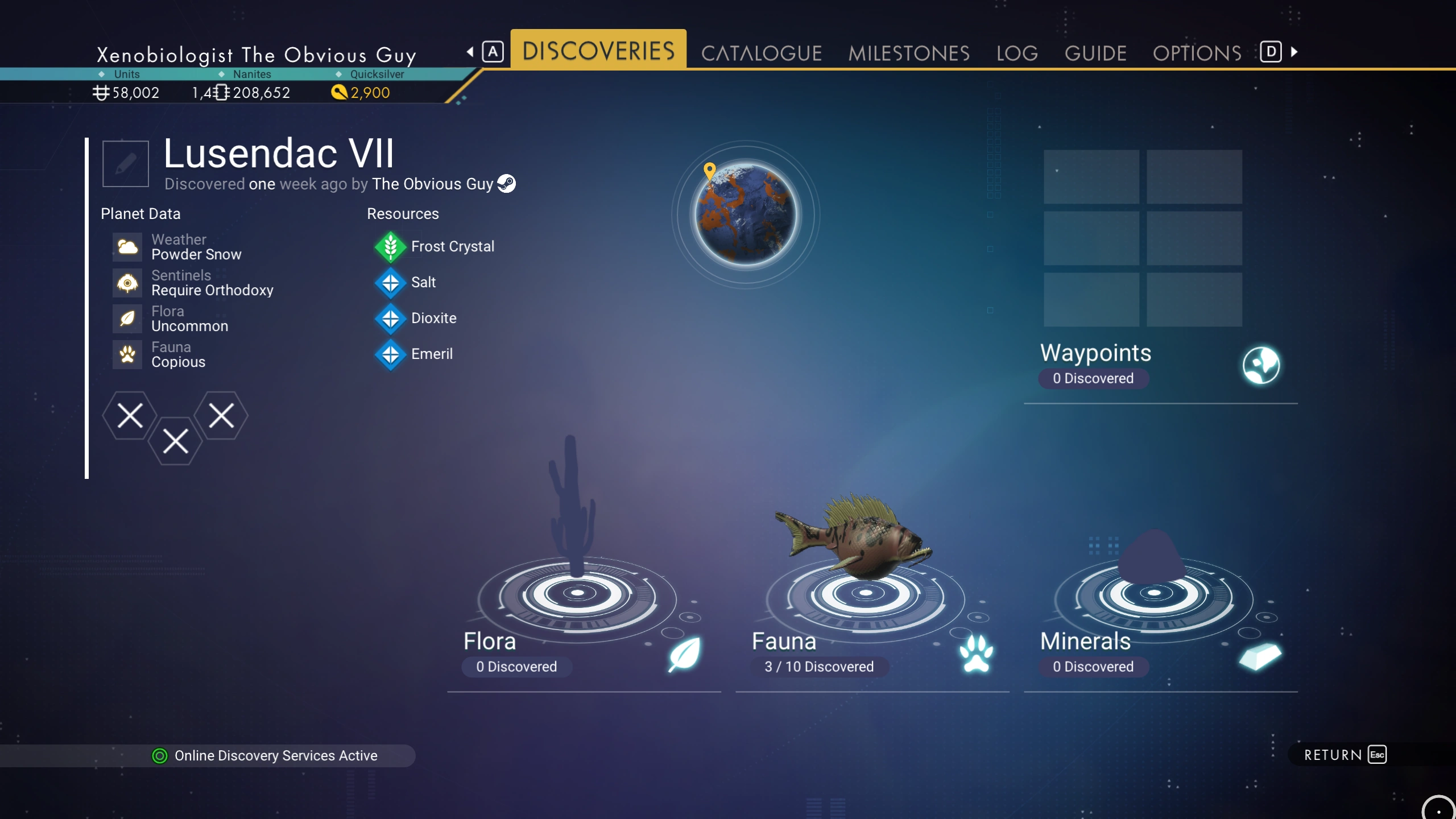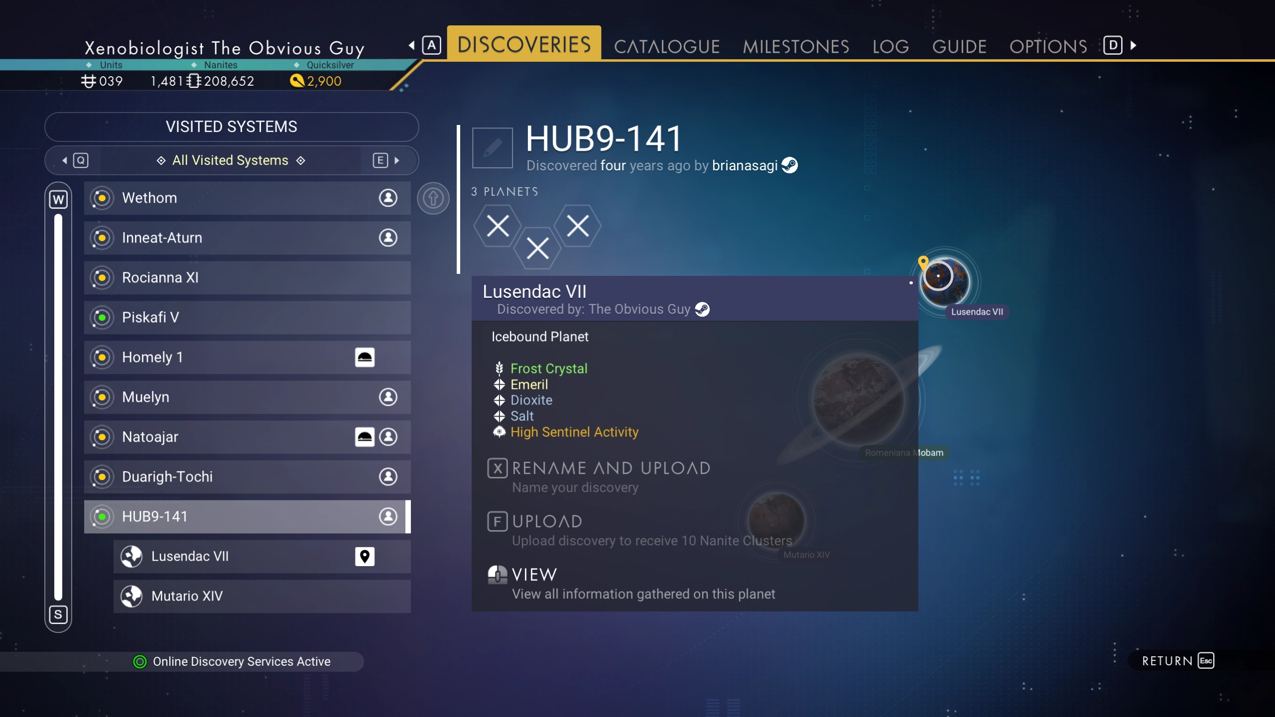 It can be found on the planet Lusendac VII in the HUB9-141 star system.
