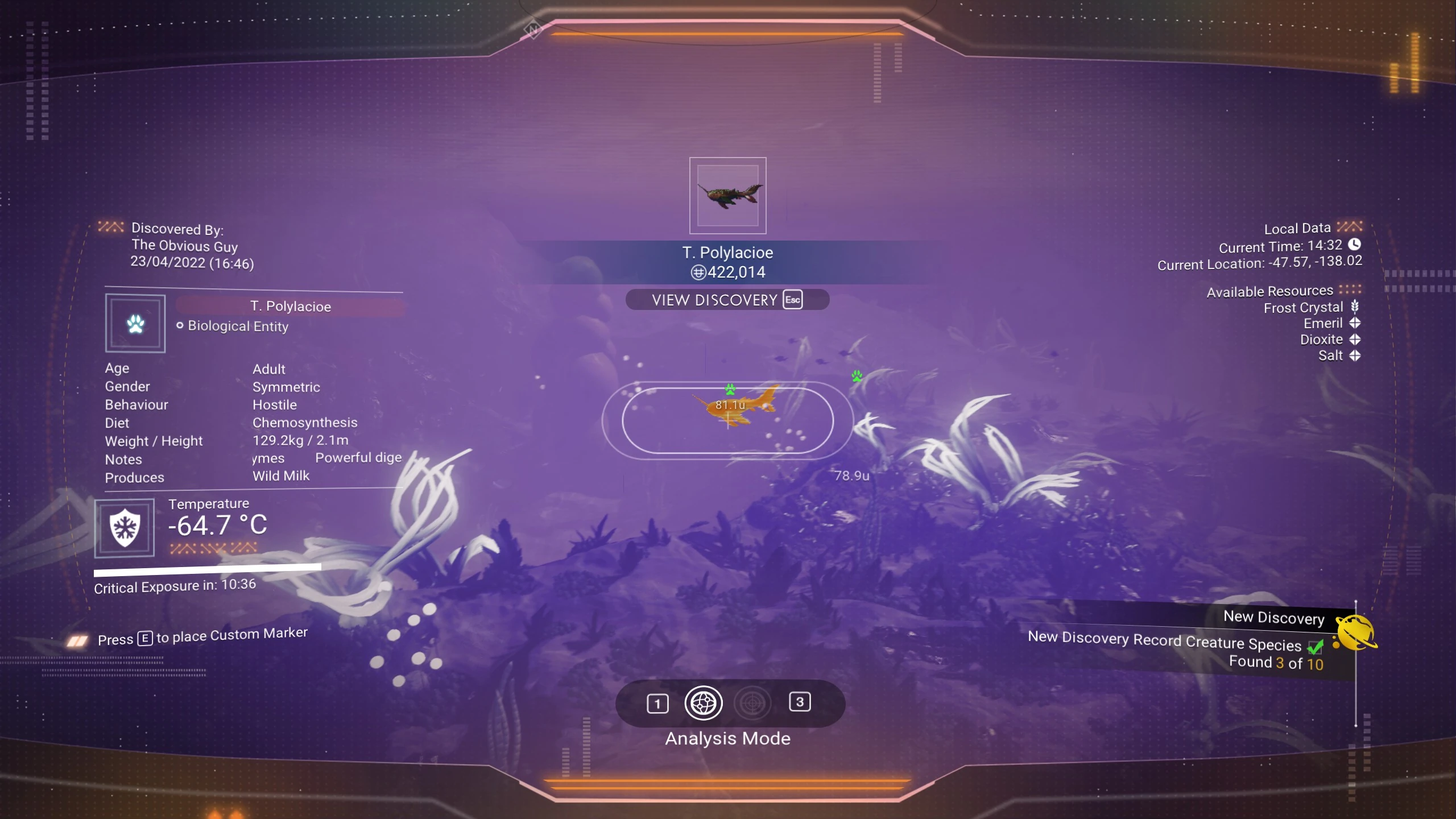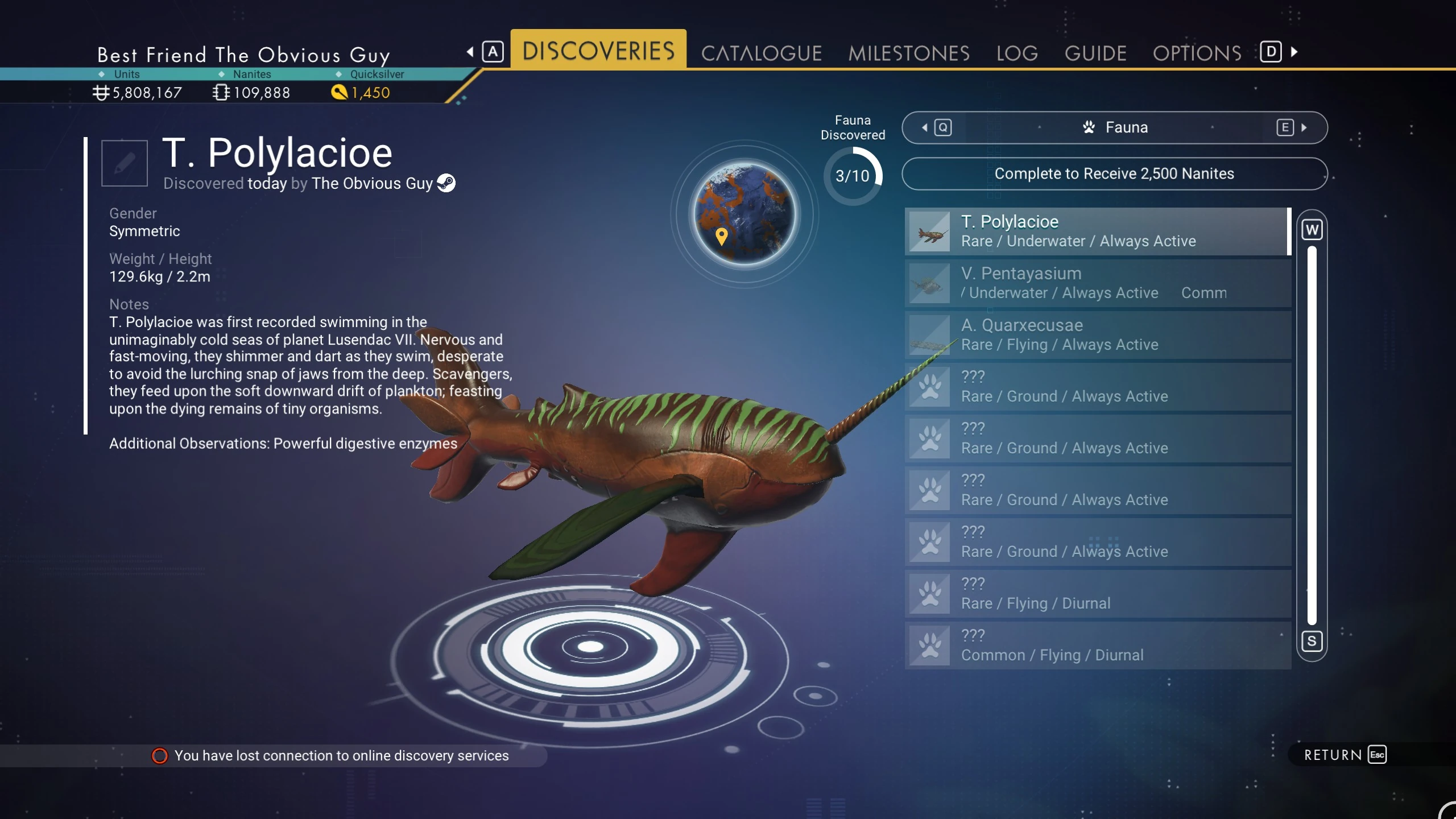 T. Polylacioe was first recorded swimming in the unimaginably cold seas of planet Lusendac VII. Nervous and fast-moving, they shimmer and dart as they swim, desperate to avoid the lurching snap of jaws from the deep. Scavengers, they feed upon the soft downward drift of plankton; feasting upon the dying remains of tiny organisms.