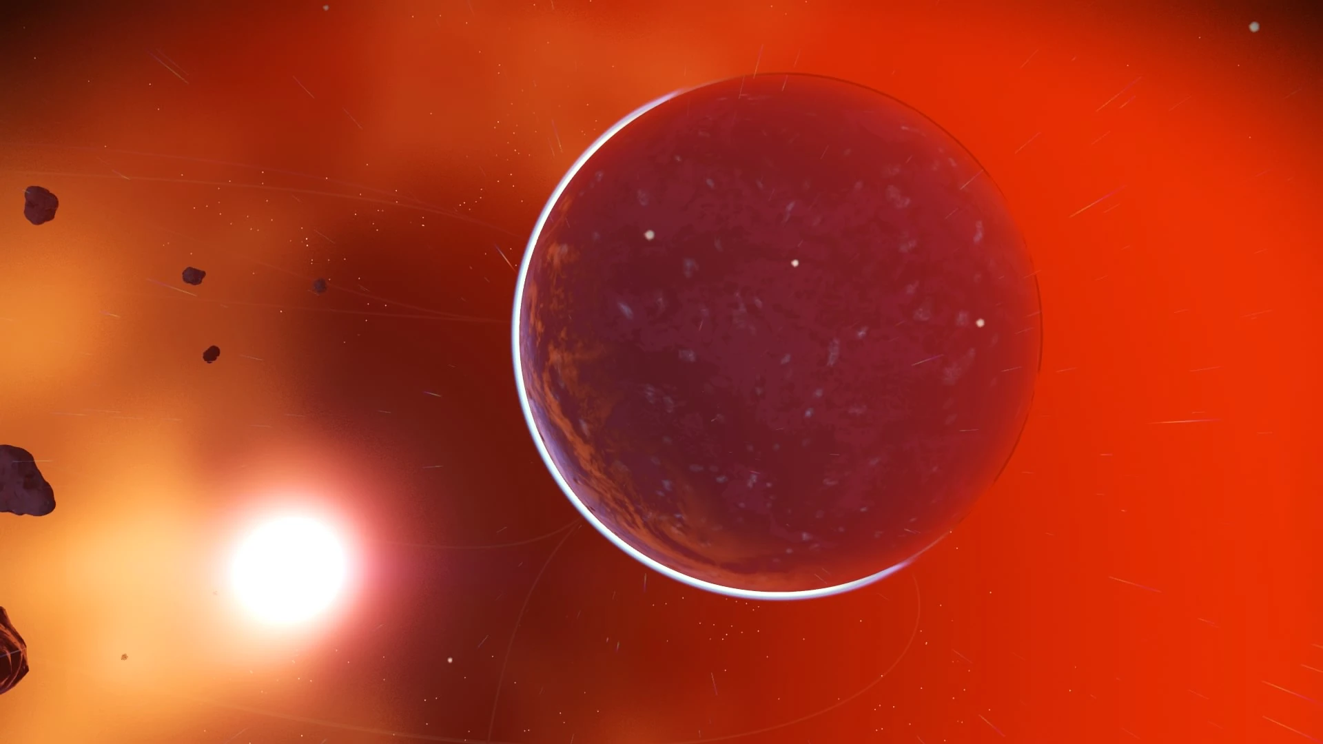 Flying across the surface of the planet