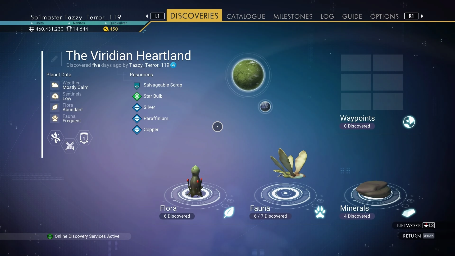 | Star Bulb, Copper, Paraffinium, Silver, Salvageable Scrap | 100% Zoology Bonus: ZoologyBonusAmount |