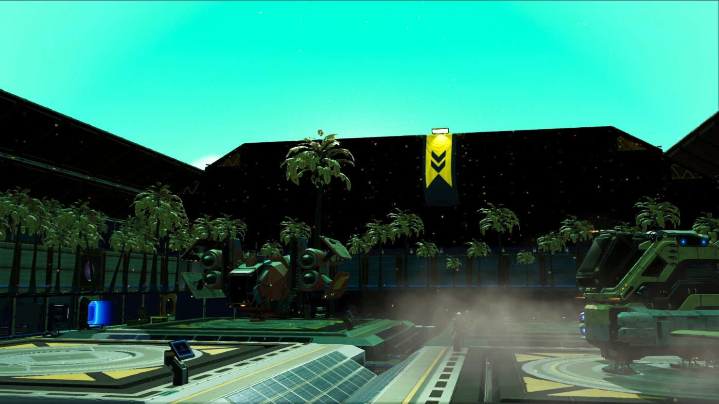 HUB consulate of the Omnis Empire, this base makes extensive use of the inverted pyramid structure to provide a pristine mountain top perch for sightseeing. With the local teleport stations, the player is able to access the base computer, Nautilon bay, and full farming complex. A locked vault holds a surplus of NipNip. It can be unlocked with a hidden switch.