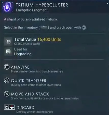 Tritium Hypercluster can be broken up into one of multiple items:
