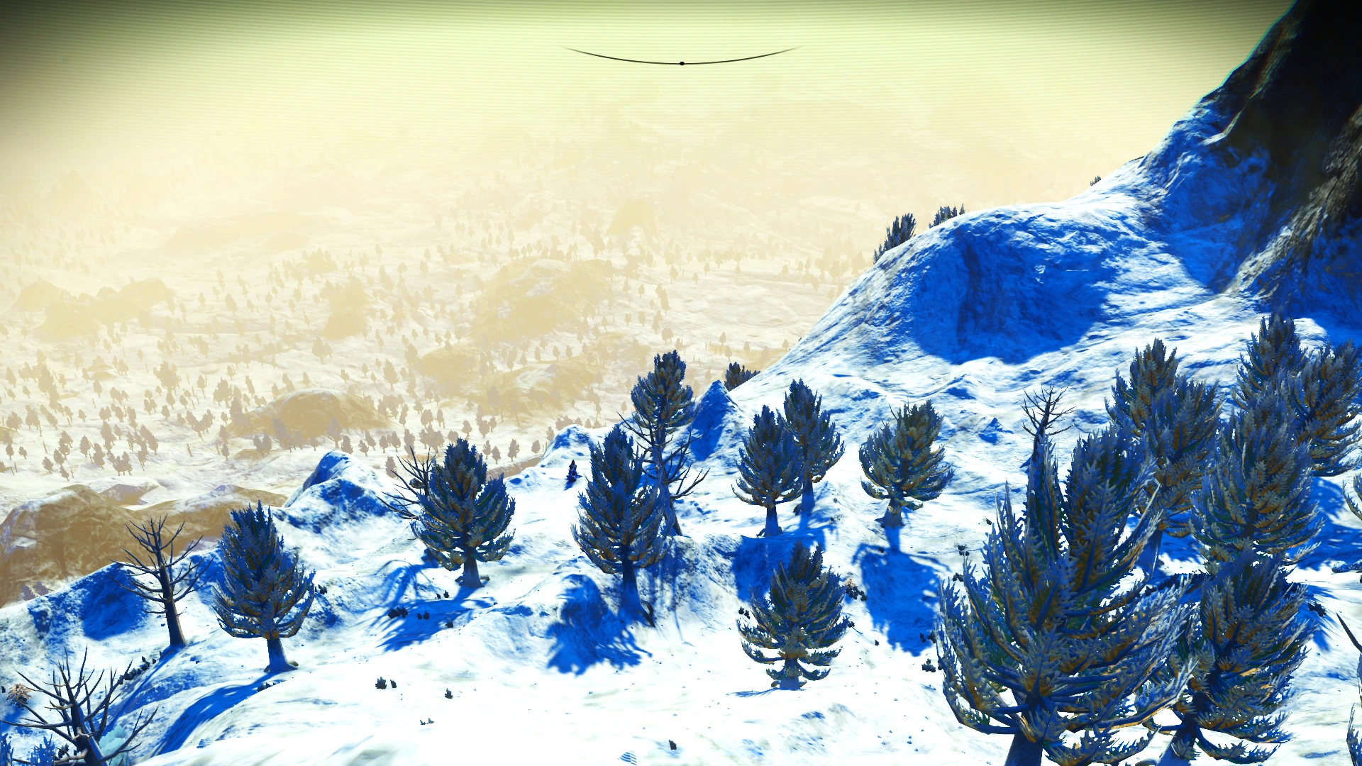| In 1.00 up to 1.13 a "vintage" filter was applied to all the visuals to produce a slight sepia tone. In Path Finder this was removed, and the change is very noticeable on white snow planets that now appear pure white instead of yellow. | |