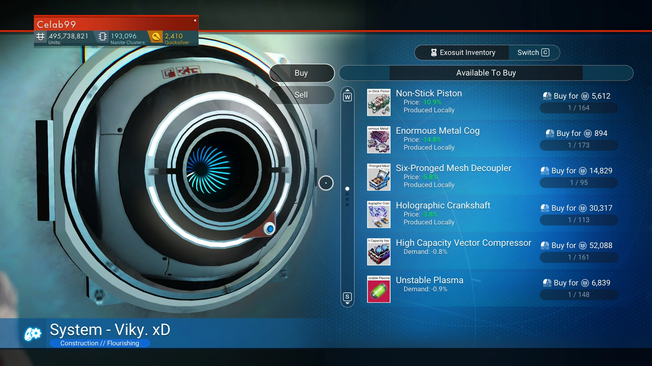 The space station merchants offer the following items for sale: