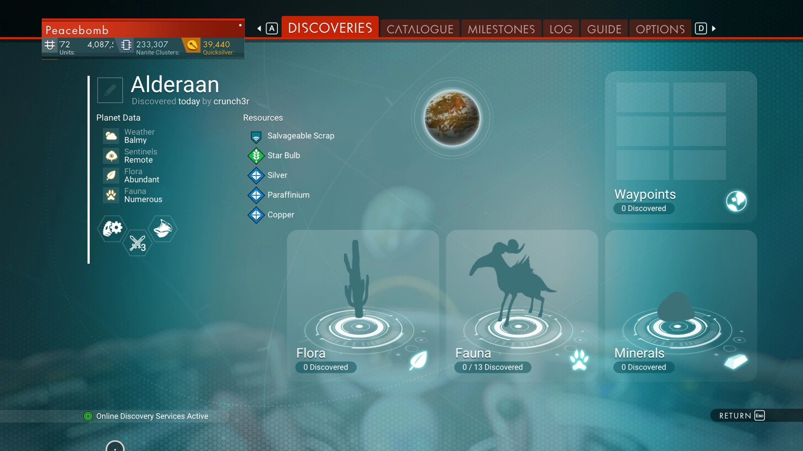Alderaan | Lush | NO (Ext. Weather) | NO (Ext. Sentinels) |