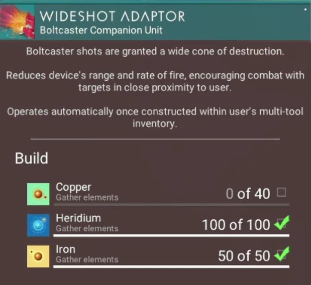 The Wideshot Adaptor is a weapon upgrade for the multi-tool's Boltcaster.