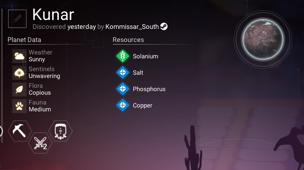 | Resources: Solanium, Salt, Phosphorus, Copper | Notes: | |||