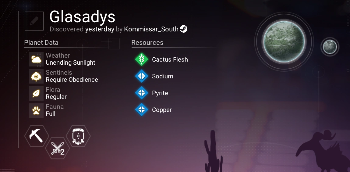 | Resources: Cactus Flesh, Sodium, Pyrite, Copper | Notes: | |||