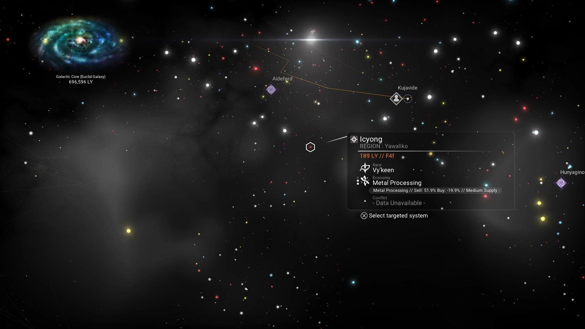 Adjacent to the No Mans High Hub home region (Lahanhar Conflux), early exploration by Metallion81 revealed promising sites for Mining and Industrialization.